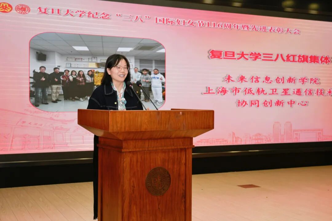 “这份荣誉,属于我们团队的每一位成员,更向所有在科技创新征途上默默耕耘的女性科技工作者致敬。”复旦大学三八红旗集体代表、未来信息创新学院上海市低轨卫星通信技术协同创新中心副教授叶红霞,分享了团队攻关空天科技、勇攀卫星技术高峰的故事。令她自豪的是,13名核心团队成员中有8位是女性,她们撑起了中心发展的“半边天”。团队建成了复旦首个国内最高标准的卫星地面站。2025年5月和11月,“复旦信息星”与“复遥号”成功发射,获评“复旦大学十大科技进展”。她相信,无论星辰大海,抑或荆棘载途,只要心怀梦想,定能以巾帼之志,在科技强国的壮丽征程中绽放芳华!